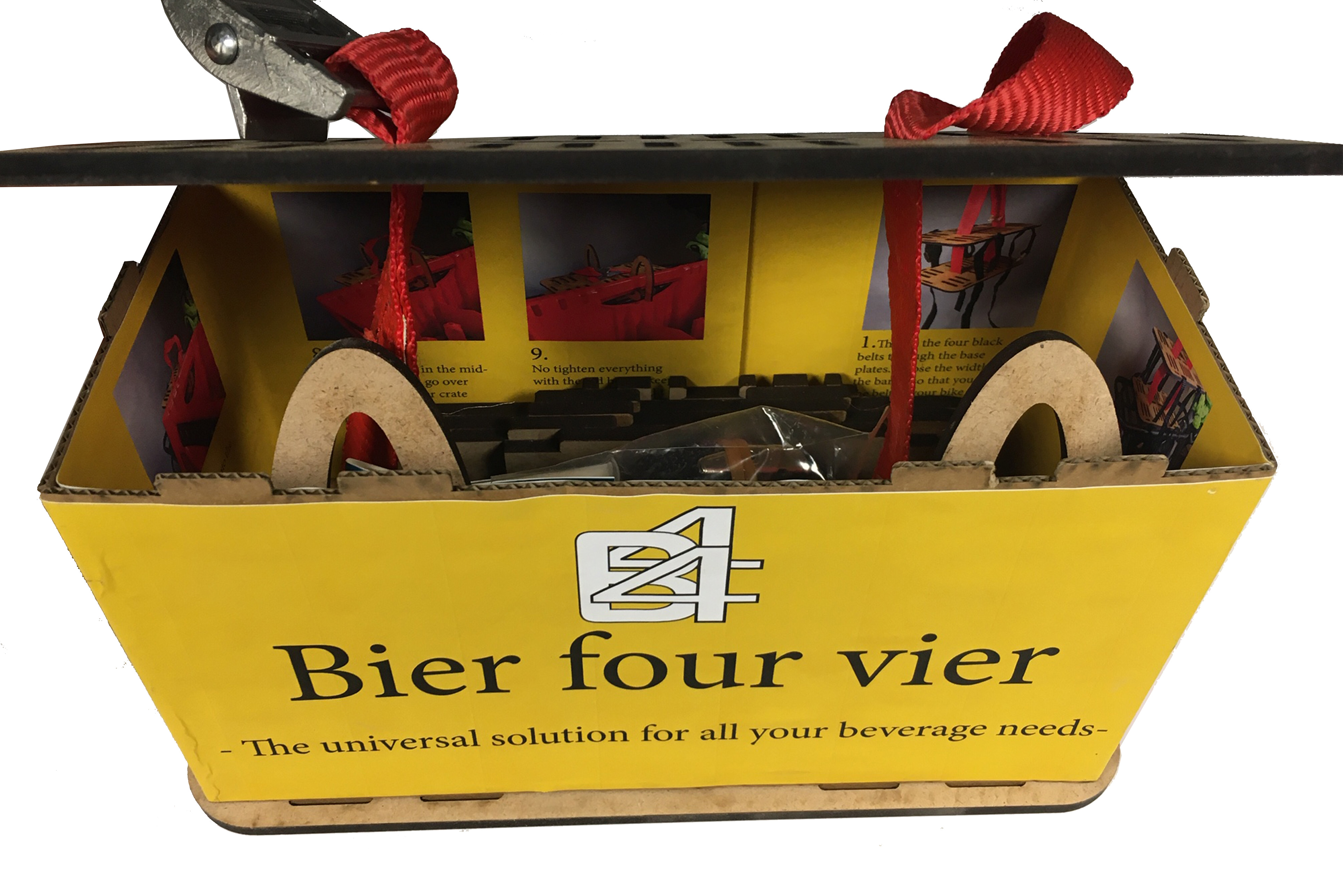 B44 has two options to transport your bottle crates. The warthog designed by me, that can be used on a bicycle rack or the buffalo by Lion, which is designed for your handlebars.